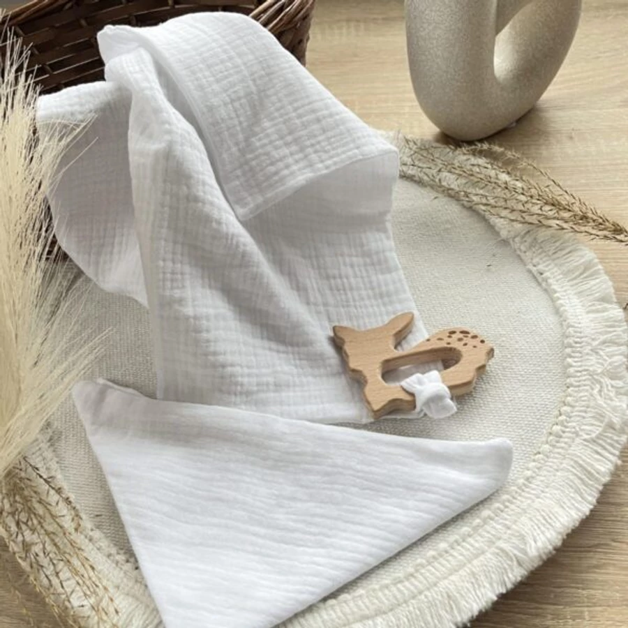 2. Szundikendő (30X30 cm): Az Oeko-Tex szabványnak megfelelő, kiváló minőségű pamut szundikendő. Kényelmes dupla géz anyagból készült, a fa elemek pedig könnyen eltávolíthatók, így könnyedén mosógépben is tisztítható. Egy kellemes alvás biztosítása a kisbabának.